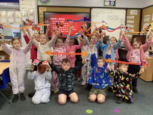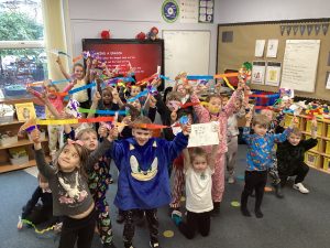 On Friday, the whole school had a pyjama day, paying £1 each to wear our pyjamas to school. The money raised went to the charity Zarach who provide bed bundles for children in difficult situations. We really enjoyed being in our pyjamas in school!