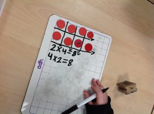 In Maths we are continuing learning about Multiplication. We looked at arrays and how they can help.
